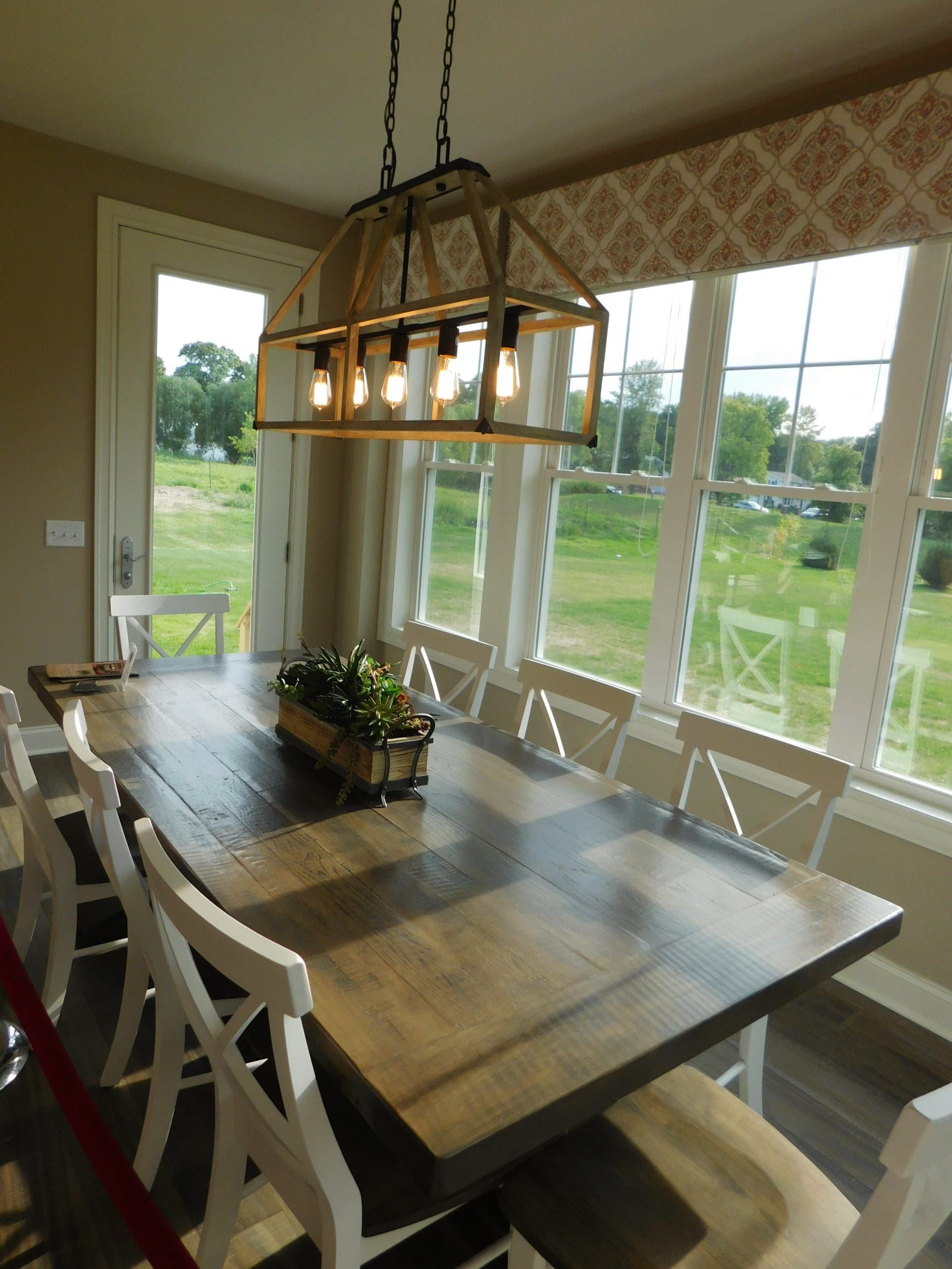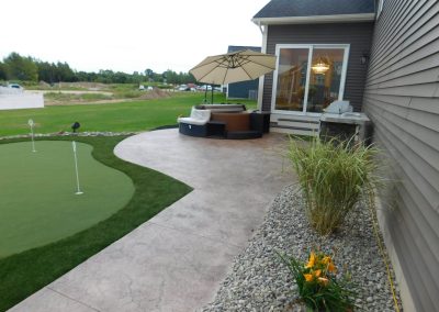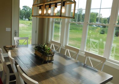 The light-filled dining area accommodates a long table and accesses a delight- filled patio, complete with built-in grill, hot tub and putting green. What a great transition from indoor to outdoor living!