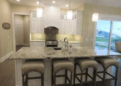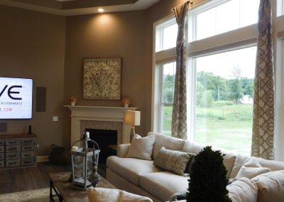 The great room’s feature wall warms with homey fireplace and room for art or a flat screen. Seating won’t be a problem with space for multiple large sofas or large sectional and chairs.